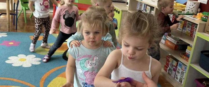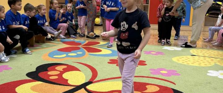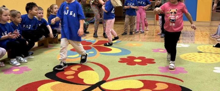 Dzieci z grupy tygryski wykonały taniec integracyjny ,,Grzybek tu". Dodatkowo elementem było wspieranie akcji "Dzieciństwo bez…