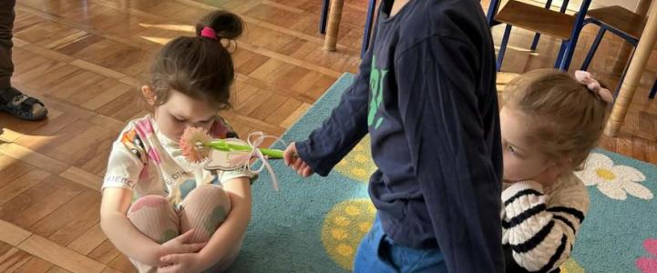 Dzieci z grupy tygryski wykonały taniec integracyjny ,,Grzybek tu". Dodatkowo elementem było wspieranie akcji "Dzieciństwo bez…