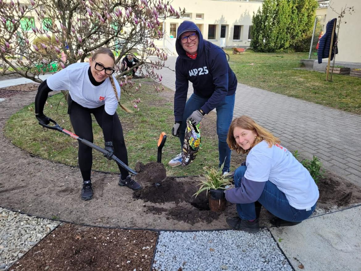 Projekt „Zielona Skarpa Zmysłów” realizowany w MP 25 „Bajka” przy wsparciu Fundacji Orlen im. Ignacego Łukasiewicza to inicjatywa rozwijająca wrażliwość sensoryczną dzieci poprzez kontakt z naturą. W ramach działań przedszkolna przestrzeń została wzbogacona o nowe rośliny.