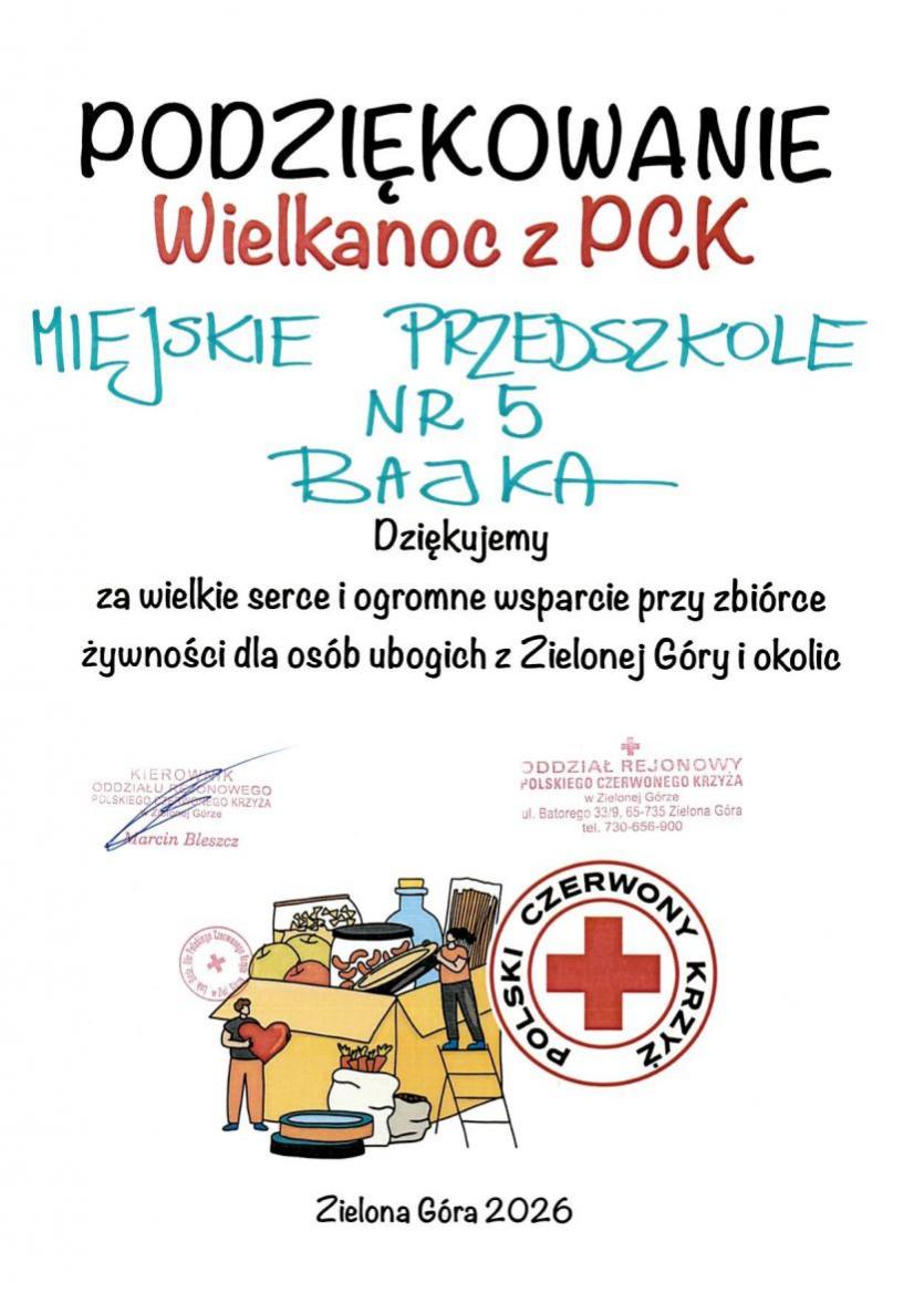 Podziękowanie Wielkanoc z PCK
