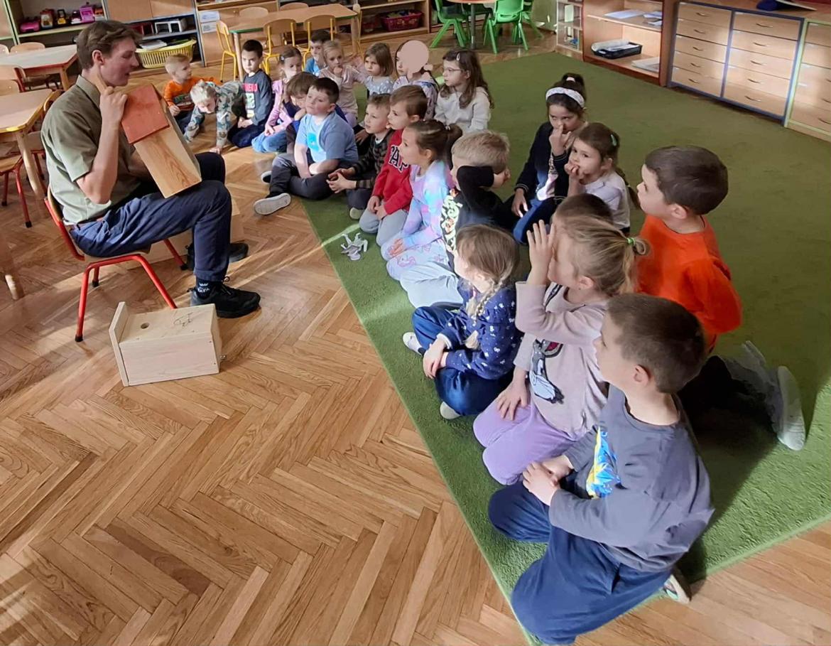 Zajęcia ,,Schronienia dla zwierząt i pomoc zwierzętom w najbliższym otoczeniu" - Akademickie Koło Ligi Ochrony Przyrody. Otrzymanie budek - schronień dla zwierząt