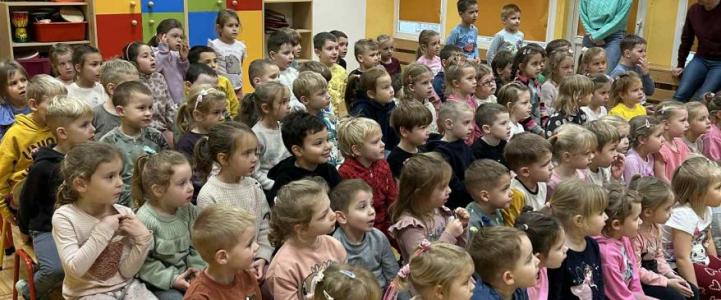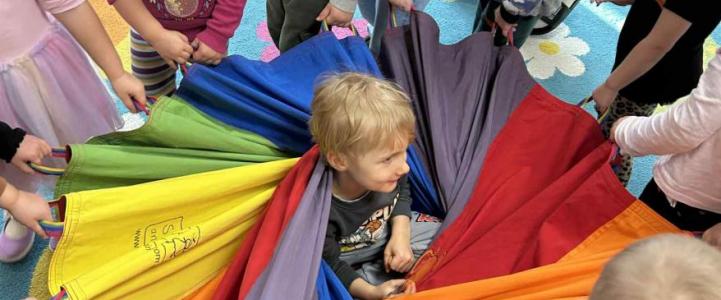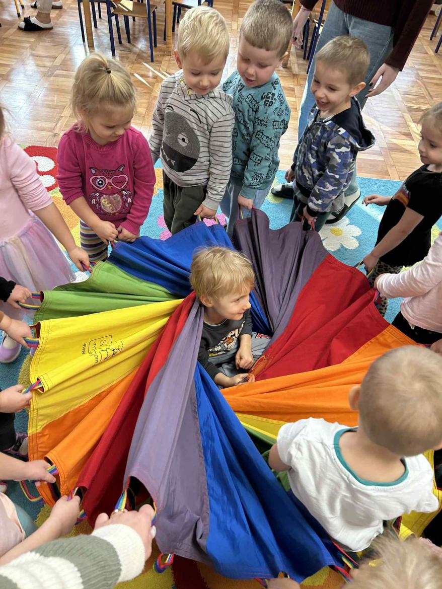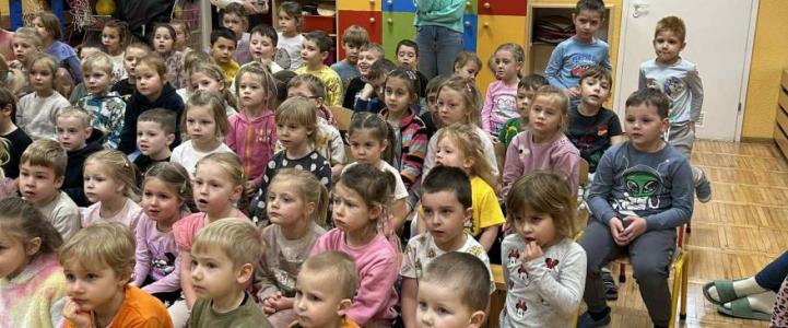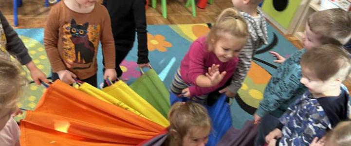 Dzieci z grupy tygryski wykonały taniec integracyjny ,,Grzybek tu". Dodatkowo elementem było wspieranie akcji "Dzieciństwo bez…