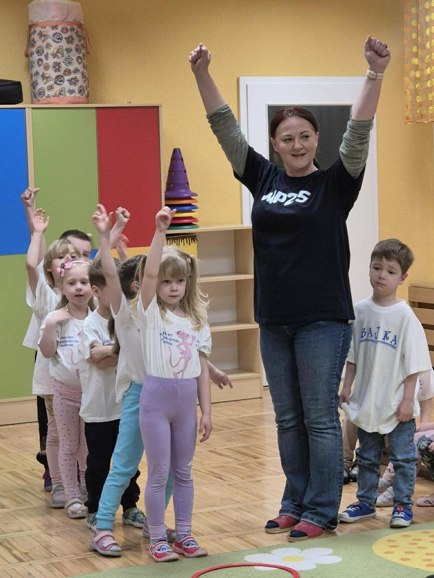 W środę odwiedziły nas dzieci ze Żłobka Bose Stópki. Mali goście mieli okazję zwiedzić przedszkole, poznać sale oraz wspólnie pobawić się z naszymi przedszkolakami. Nie zabrakło także radosnego czasu na placu zabaw. Dziękujemy za miłe spotkanie i czekamy na kolejne odwiedziny! 😊