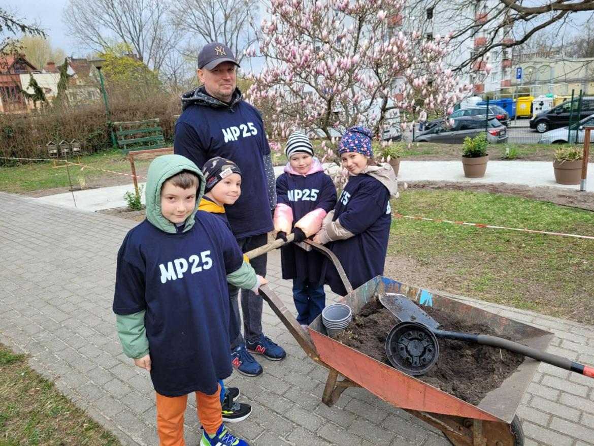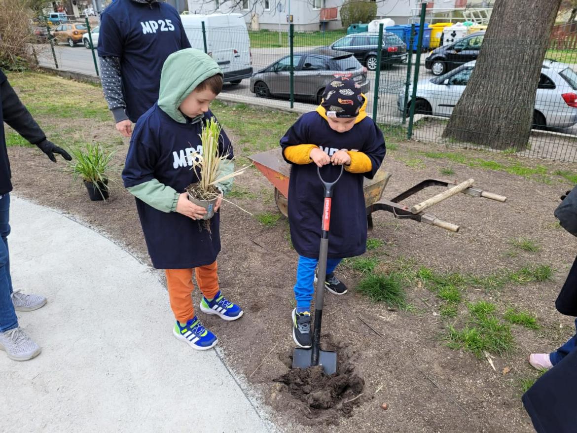 Projekt „Zielona Skarpa Zmysłów” realizowany w MP 25 „Bajka” przy wsparciu Fundacji Orlen im. Ignacego Łukasiewicza to inicjatywa rozwijająca wrażliwość sensoryczną dzieci poprzez kontakt z naturą. W ramach działań przedszkolna przestrzeń została wzbogacona o nowe rośliny.