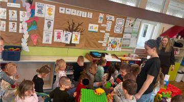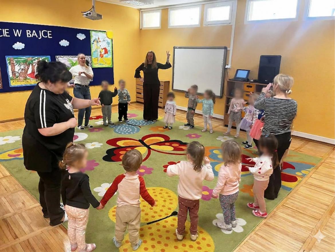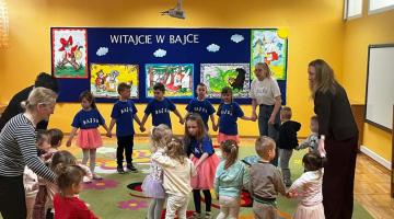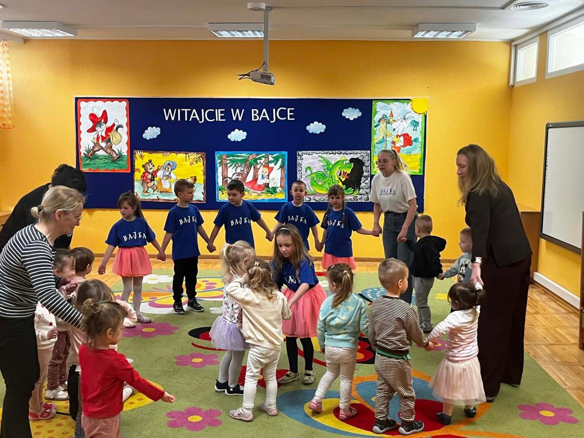 W środę odwiedziły nas dzieci ze Żłobka Bose Stópki. Mali goście mieli okazję zwiedzić przedszkole, poznać sale oraz wspólnie pobawić się z naszymi przedszkolakami. Nie zabrakło także radosnego czasu na placu zabaw. Dziękujemy za miłe spotkanie i czekamy na kolejne odwiedziny! 😊